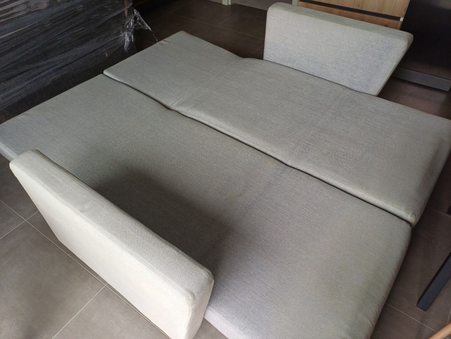 Dvosjed na razvlacenje, šir. 170cm. Dizajnerski komad, BoConcept, za manje prostore. Jako modularan, s nekoliko mogucih pozicija za sjedenje, za odmaranje s naslonom u nagnutom polozaju i za spavanje. Dimenzije lezaja 150x200 cm.