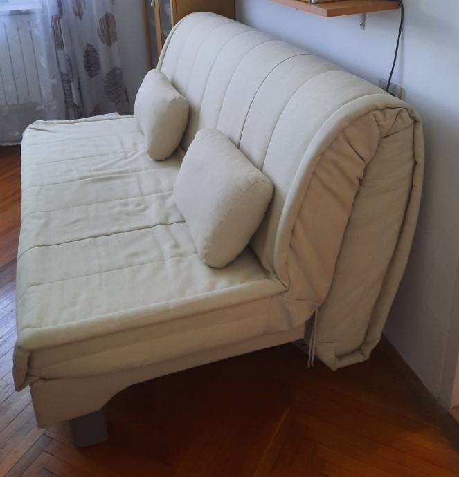 Prodajem rabljeni dvosjed na razvlačenje. Odvojiva tekstilna navlaka. Širina 145, dubina 90, visina sjedala 40 cm. Dimenzije razvučenog kreveta za spavanje 145x195 cm.