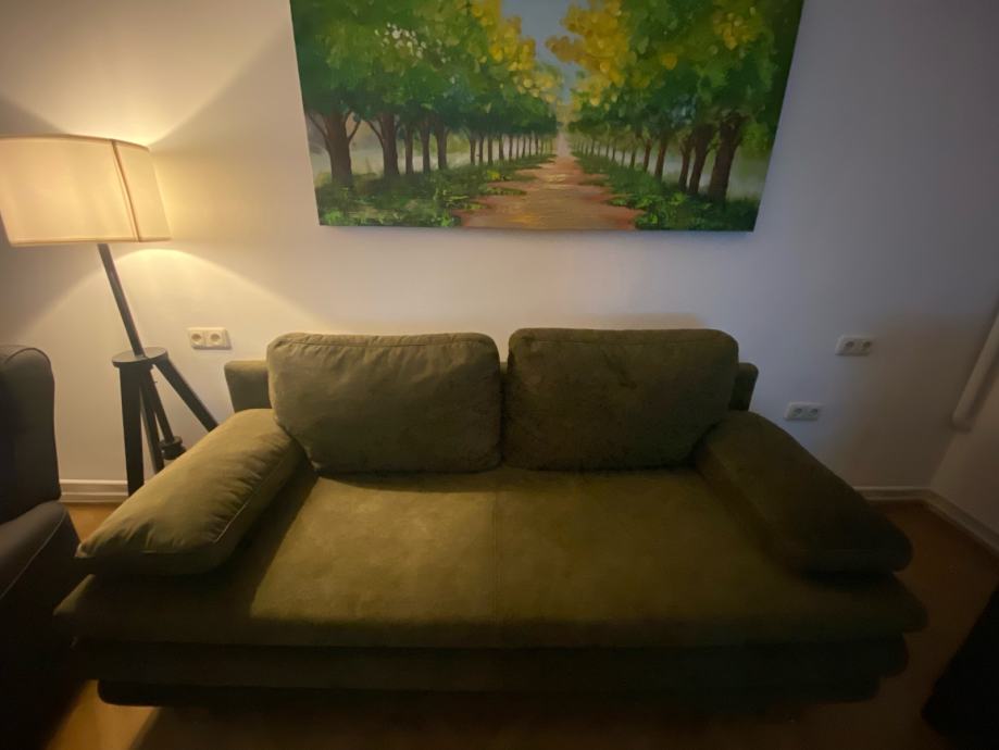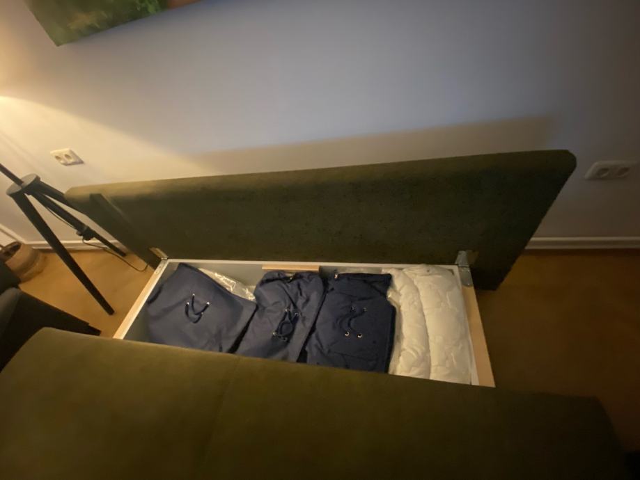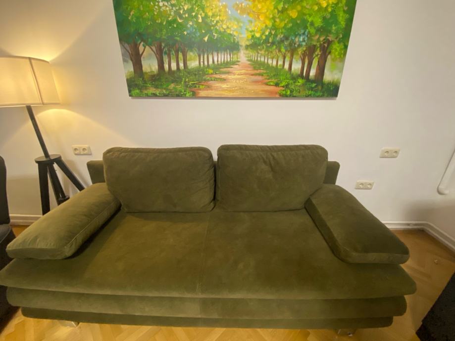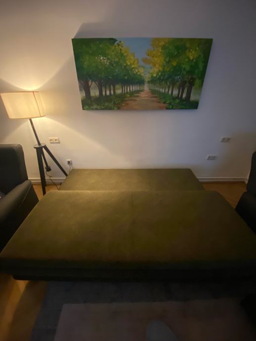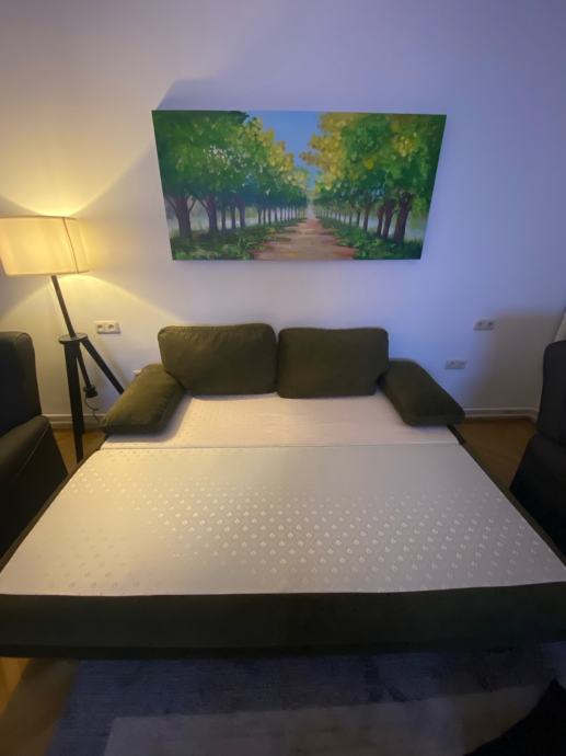 Prodajem dvosjed u sjajnom stanju. Dimenzije 185 x 150 cm kada je razvucen ili 185 x 120 kada je sklopljen. S prostorom za pohranu. Jedva koristen.