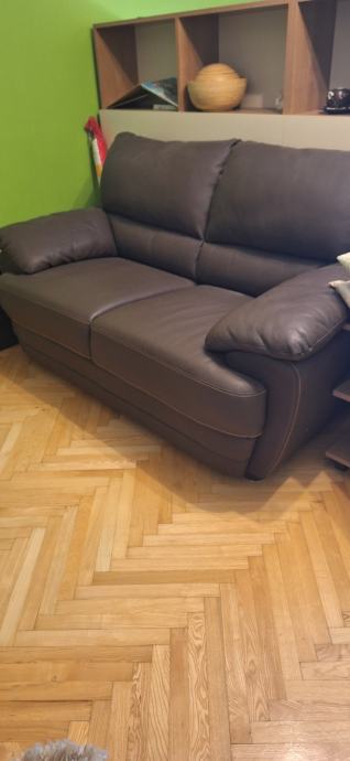 Prodajem udobni dvosjed. Stanje je dobro s nekoliko ogrebotina na koži od korištenja.