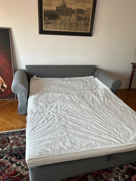 Prodajem nekoristeni Ikea dvosjed na razvlacenje sive boje. Razvlaci se u krevet dimenzije 160x200cm.