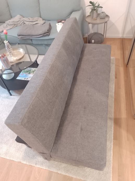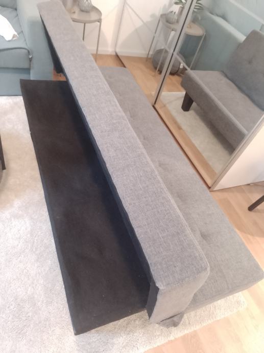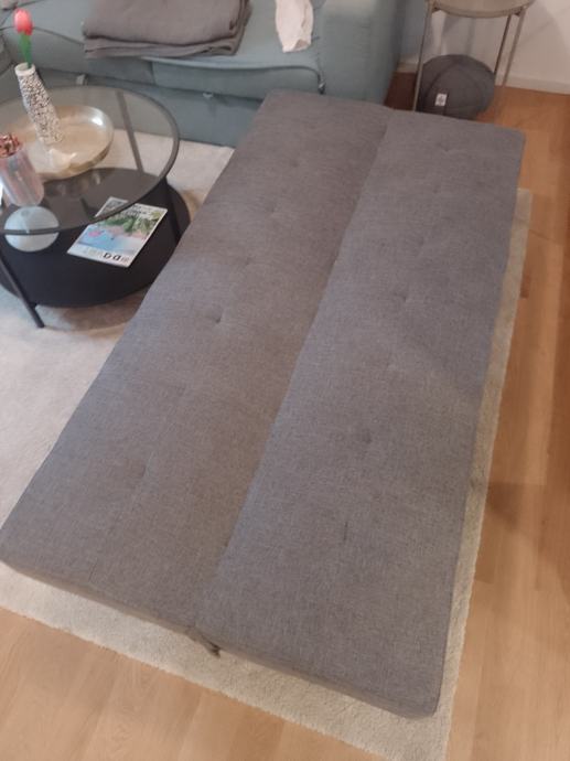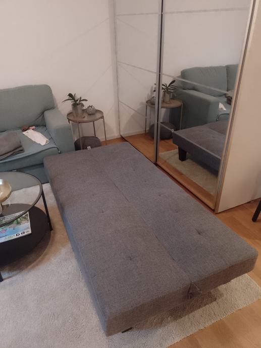 Kratko korišten kauč na rasklapanje malih dimenzija 180 x 93 cm, kad se složi kao krevet dimenzija je 180 x 46 cm. Lagan, za prijevoz noge se lako odviju.