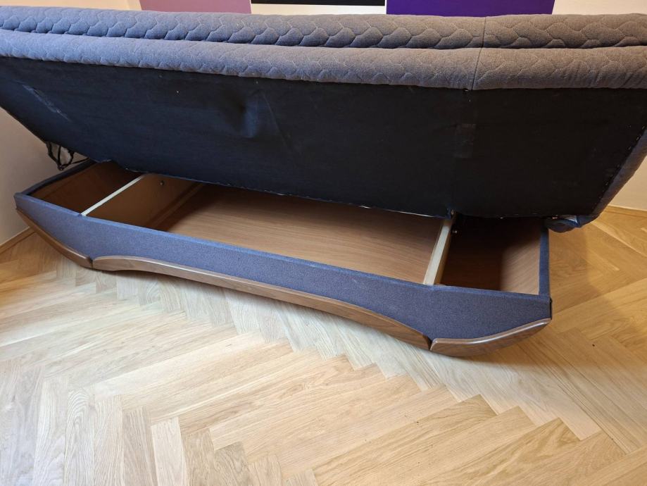 Konstrukcija je stabilna i čvrsta, bez oštećenja, a mehanizam za rasklapanje ispravan i lagan za korištenje. Površina je očuvana, bez većih tragova korištenja. Kauč pruža udobnost i za sjedenje i za spavanje.
