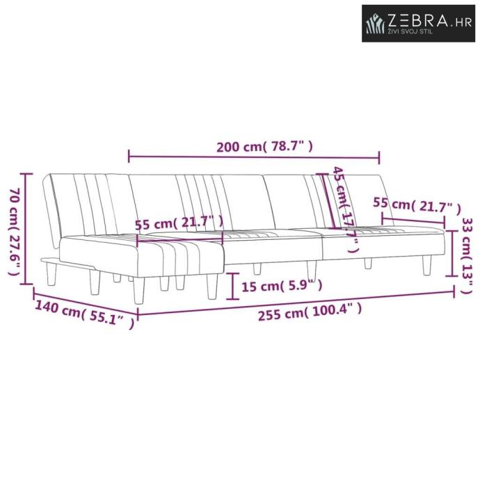 Ukupne dimenzije: 255 x 140 x 70 cm (Š x D x V)