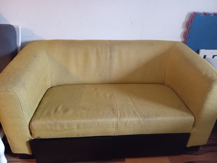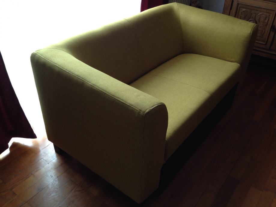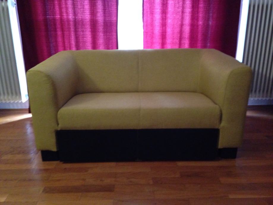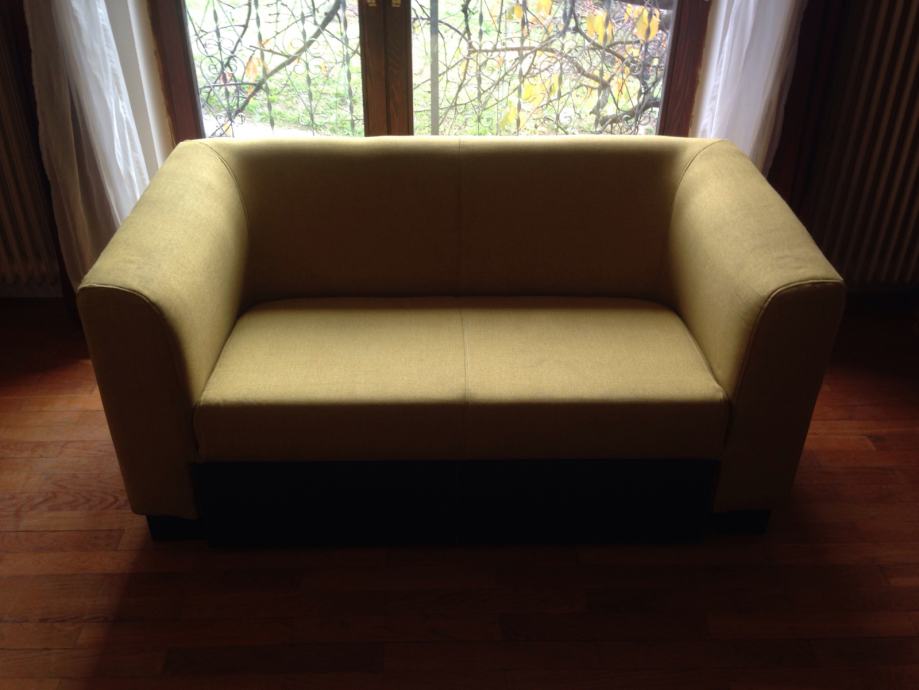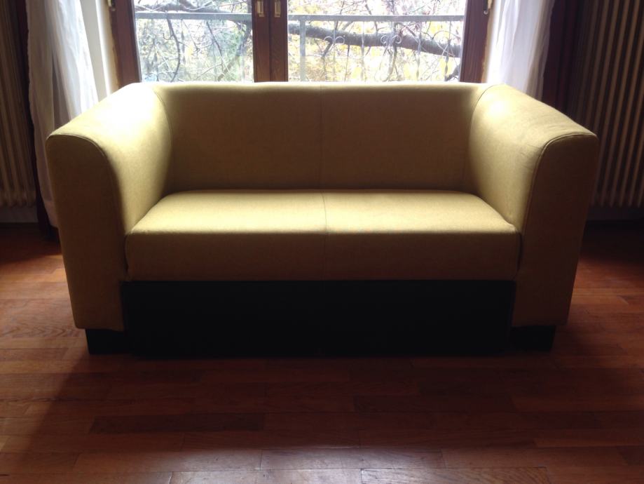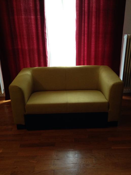 Dvosjed je bio od umjetne kože no presvučen je u kvalitetan talijanski tapecirung, trenutno je flekav ali kad se opere sa strojem izgleda kao na ostalim slikama.. Udoban je za sjedenje.
