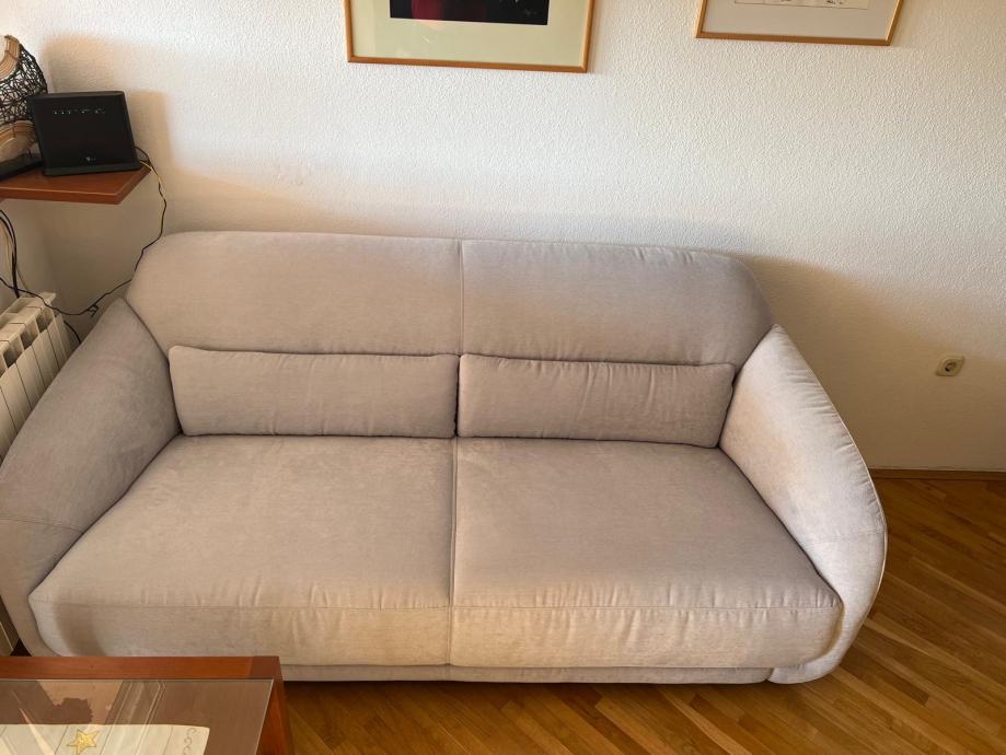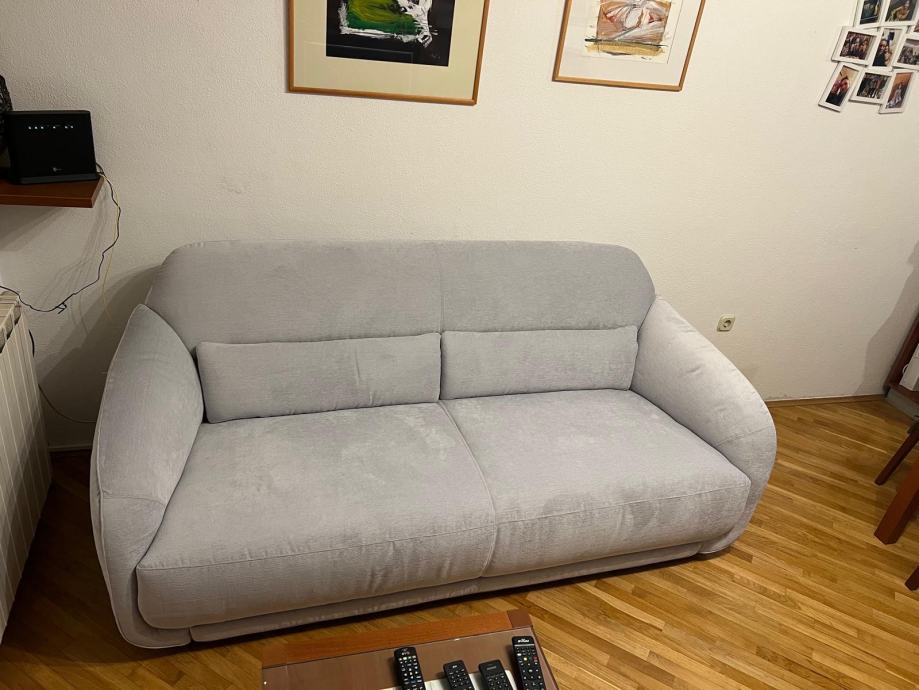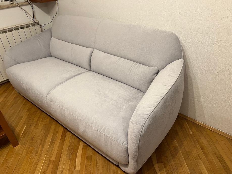 Prodajem Natuzzi dvosjed u izvrsnom stanju. Radi se o modelu presvučenom svijetlosivim tkaninom mekanog tekstila, modernog i zaobljenog dizajna koji odaje kvalitetu talijanske proizvodnje. Dvosjed je prostran i udoban, s dubokim sjedištem i mekim naslonima za ruke. Svježe izgleda i u odličnom je stanju, gotovo kao iz trgovine.