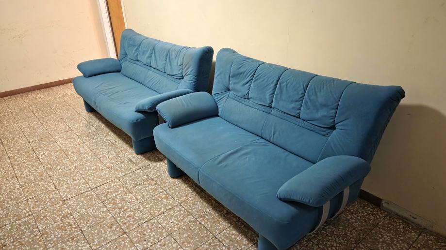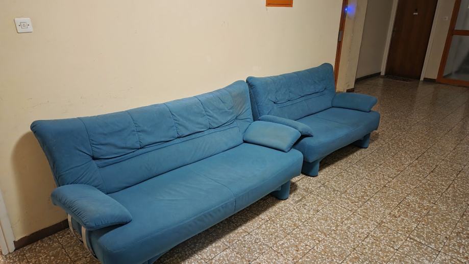 Prodaje se dvosjed dimenzija 150x80, u dobrom stanju. Uz njega gratis trosjed s vidljivim znacima koristenja, potrebno očistiti. Konstrukcije su u redu u oba kauca.