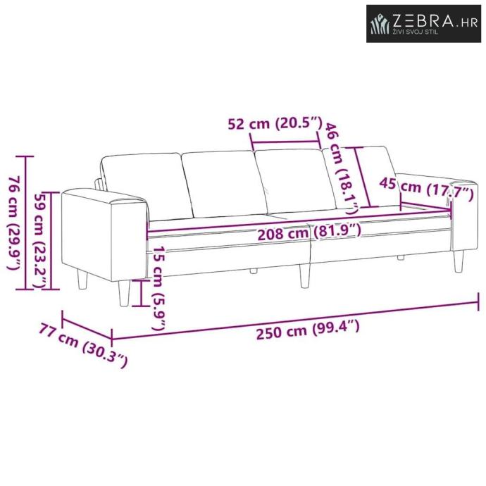 Sveukupne dimenzije: 250 x 77 x 76 cm (D x Š x V)