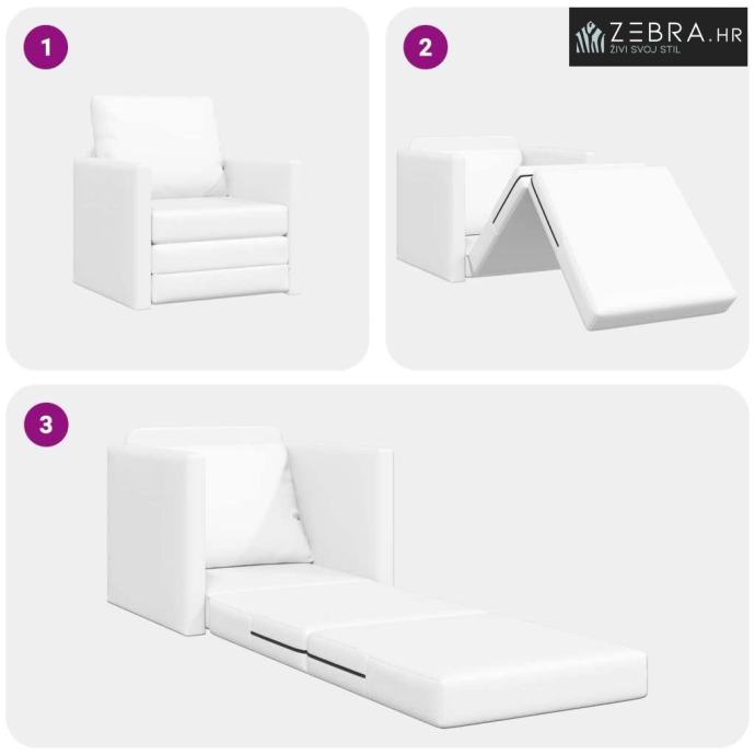Karakteristike/funkcija/dizajn: Kauč je pufast i sklopiv, što omogućuje preoblikovanje u krevet. Dizajniran kao 2-u-1, idealan je za male prostore, a čisti, minimalistički stil lako se uklapa u svaki prostor.