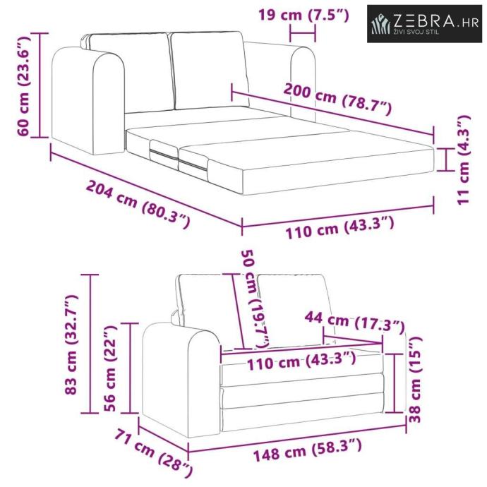 Kvalitetni materijali: Ovaj kauč na razvlačenje izrađen je od kvalitetne poliester tkanine koja nudi privlačan izgled i trajnost. Prozračna tkanina poboljšava udobnost, a mekani završni izgled osigurava luksuzan dojam, čineći ga savršenim središnjim komadom u vašem dnevnom boravku ili uredu.