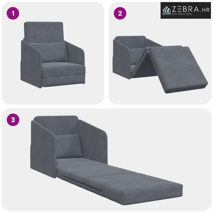 Sk foldajući kauč na krevet Tamno siva 65 x 80 x 83 cm Baršun