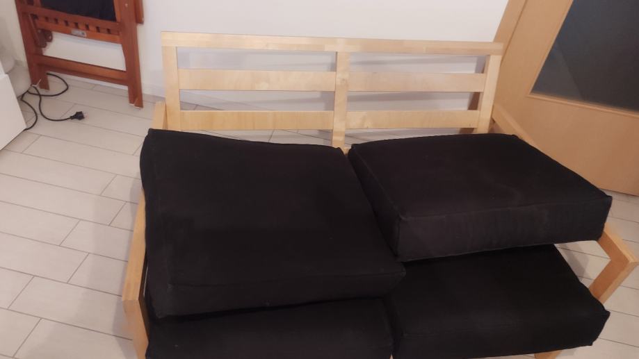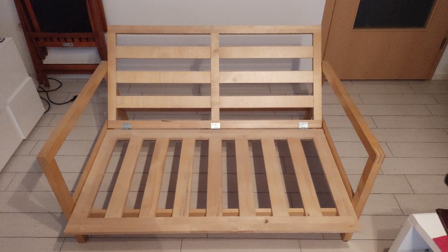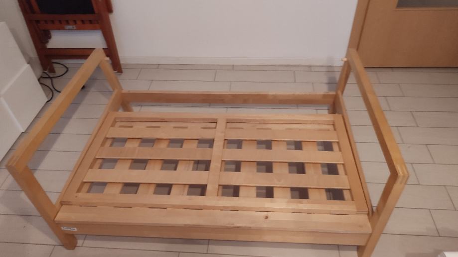 Prodajemo sklopivi dvosjed 127x90cm, dobro očuvan, od punog drveta,nije iverica. Pogodan za dnevnu ili dječiju sobu, lako se promjera , čvrst i stabilan .