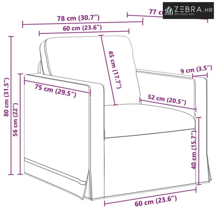 1 x Kauč: 78 x 78 x 80 cm (ŠxDxV)