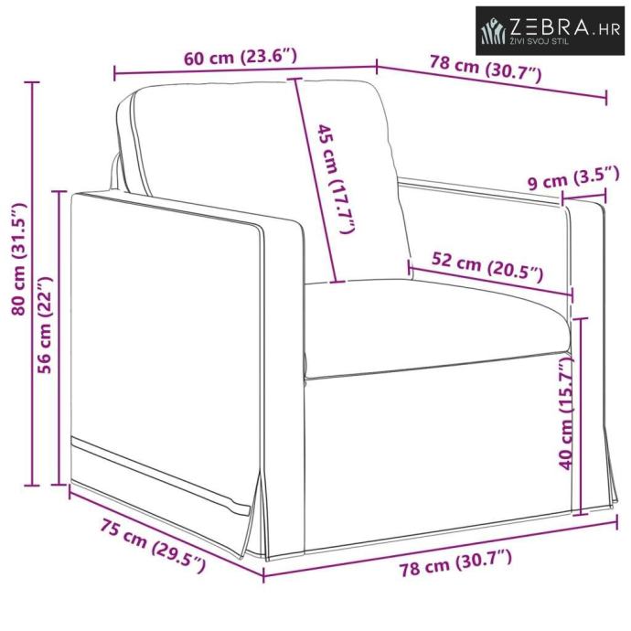 1 x Sofe: 78 x 78 x 80 cm (ŠxDxV)