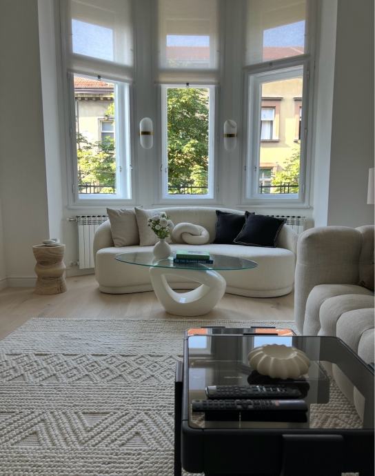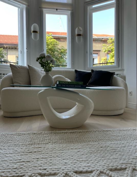 Prodajem bijelu sofu (dvosjed) boucle tkanina, stara godinu i po dana.