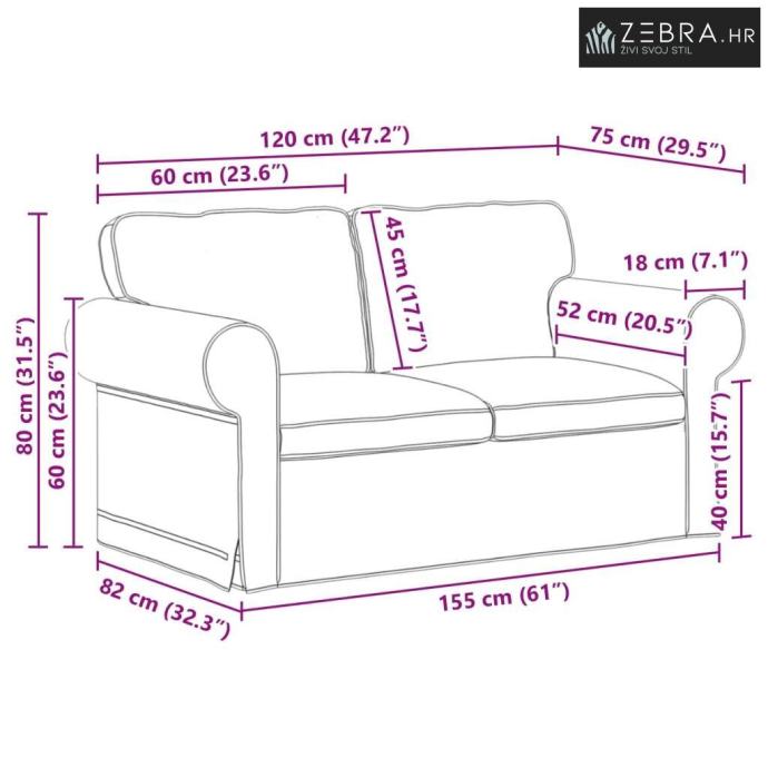 Sveukupne dimenzije: 155 x 82 x 80 cm (Š x Dub x V)