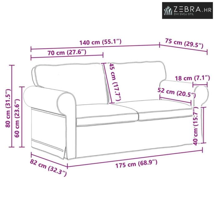 Sveukupne dimenzije: 175 x 82 x 80 cm (Š x Dub x V)