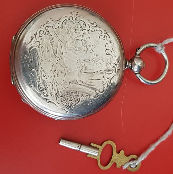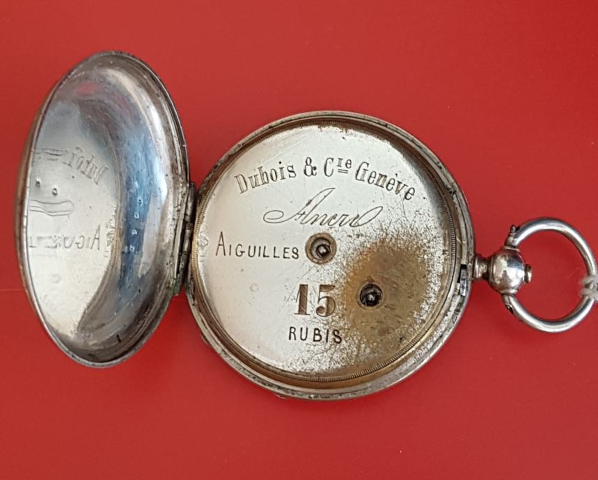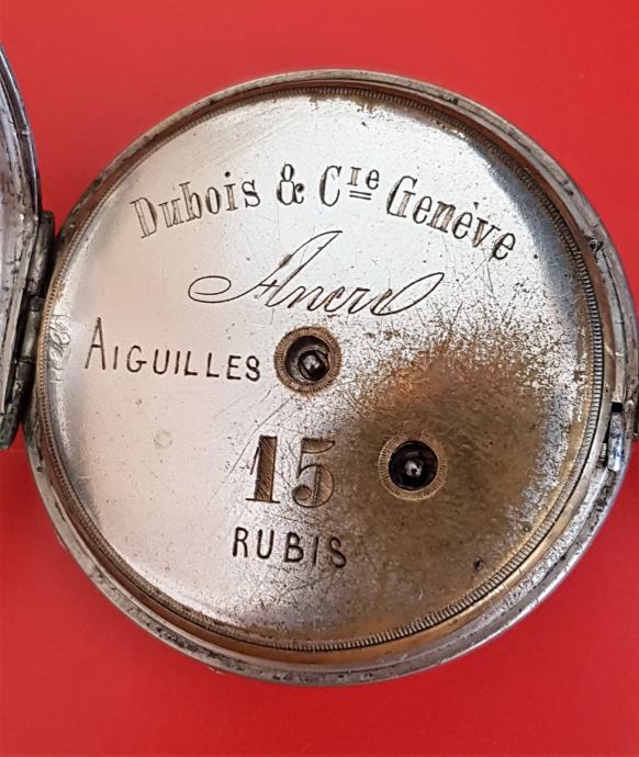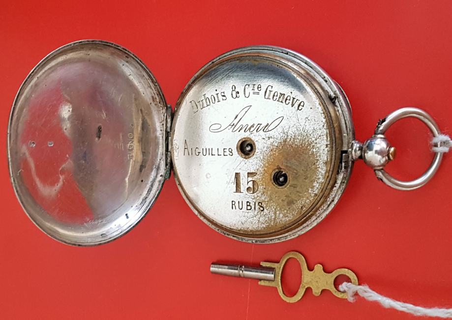 Antique džepni sat "DUBOIS"@Cie GENEVE 15 RUBIS. KEYWIND..1880. godine...bangolet movement by LEBET@Bovet FLEURIER...promjer 45,5 mm bez vratata i bove..originalni ključ navijanja...