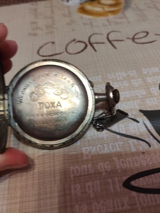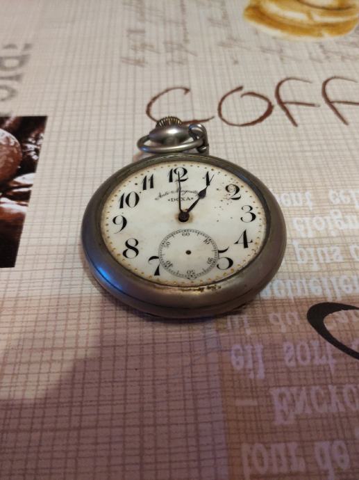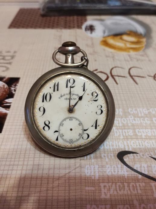 Prodajem rabljeni džepni sat marke Doxa s klasičnim brojčanikom i sekundarnim brojačem. Sat ima srebrno kućište s vidljivom oznakom proizvođača na poklopcu i očuvan je unatoč starosti. Mehanizam radi. Potrebno restauriranje.