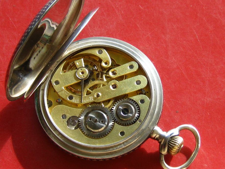 Antique džepni sat u NIELO tehnici...srebro-zlato...SWISS... 1876.. godina...pomicanje kazaljki pomoću polugice...porculanski cifer u top stanju...pozkaćeni mehanizam u top sačuvanom stanju...novo pravo staklo..