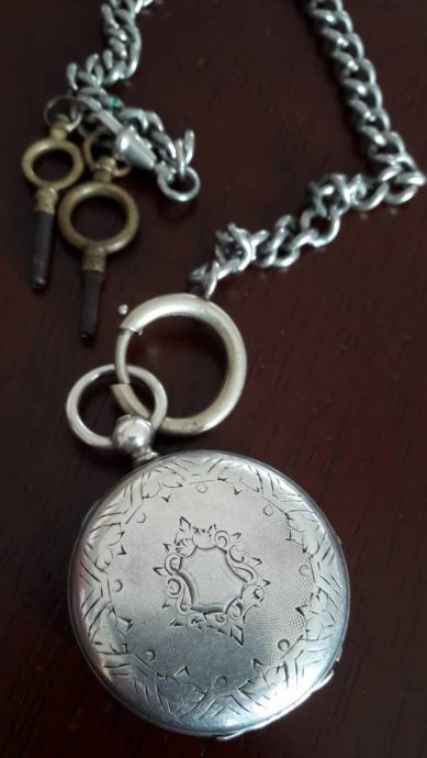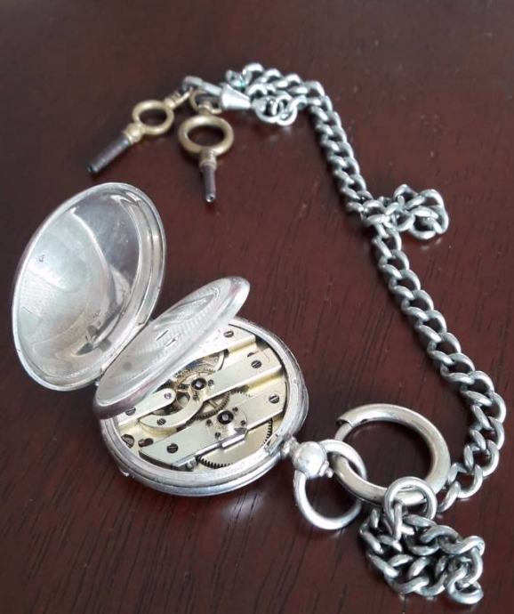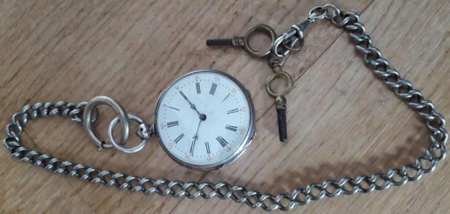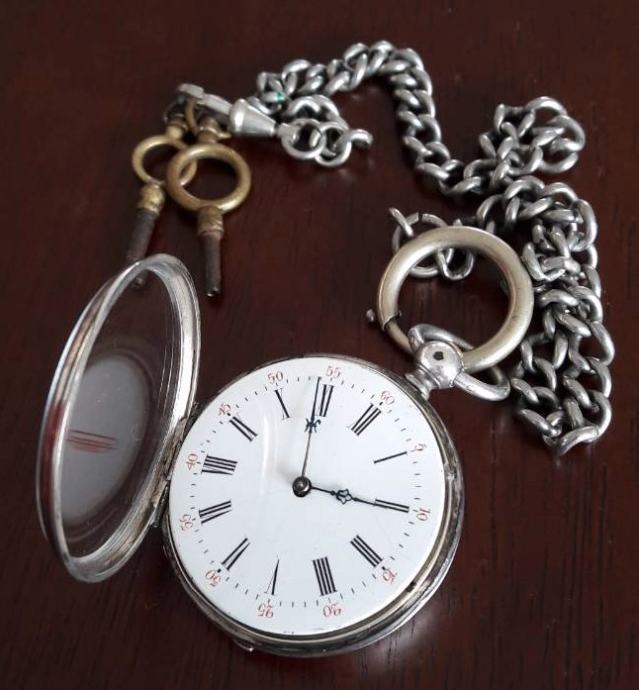 Antique srebrni džepni sat KEY WIND CYLINDRE HUIT RUBIS-8 RUBISA...1880. godina...PERFEKTNO STANJE ..originalni ključevi ..promjer 36,5 mm bez vrata i bove...