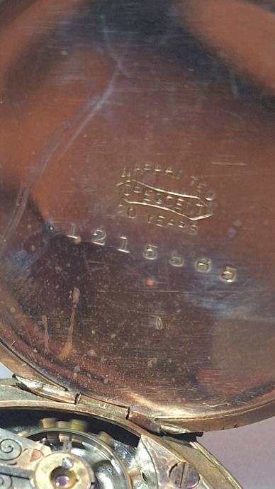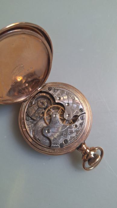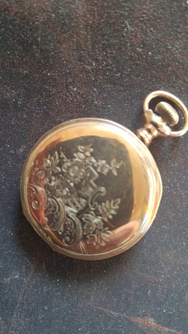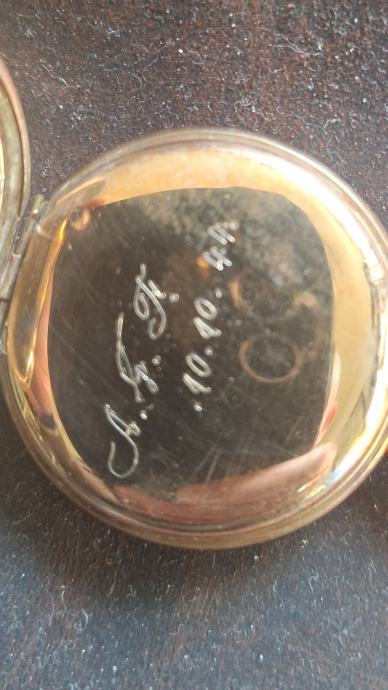 Promjer 40 mm. Kuciste lovacko pozlaceno sa garancijom 20 god sto ukazuje na visoku kvalitetu pozlate. Podesavanje kazaljki izvlacenjem krunice I vrtnjom suprotno od smjera kretanja kazaljki. Godina prouzvodnje 1905.