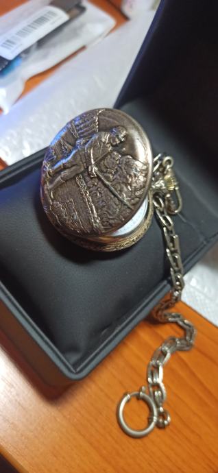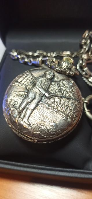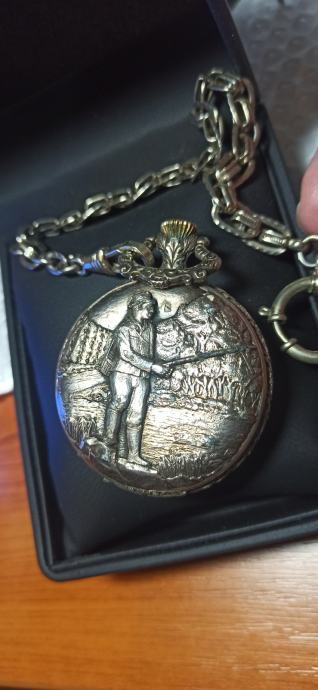 Ribolovni motiv rezbaren na kućištu, Sat je iz 60 tih godina i u odličnom stanju za svoje godine radi kao Švicarac, ima original lanac i odlično je očuvan cifer.