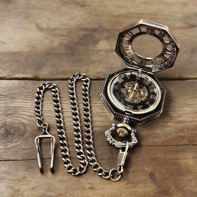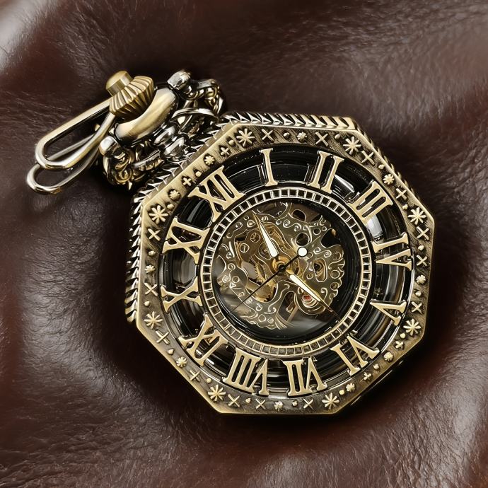 Vintage mehanički džepni sat, steampunk osmerokutni dizajn, savršen za blagdanske ili rođendanske poklone