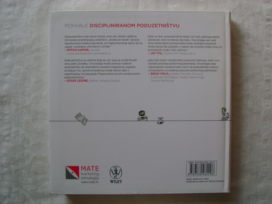 Knjiga Disciplinirano poduzetništvo nudi sveobuhvatan, integriran, i dokazan pristup korak po korak stvaranju inovativnih, vrlo uspješnih proizvoda. Knjiga je usredotočena na iterativni proces koji Vas dovodi do optimalnog, elegantnog rješenja – temelja cijelog Vašeg posla. Bilo da stvarate fizički predmet, usluge ili isporučujete informacije, Disciplinirano poduzetništvo razbija potrebne procese u 24 koraka koje bilo koja marljiva osoba može naučiti.