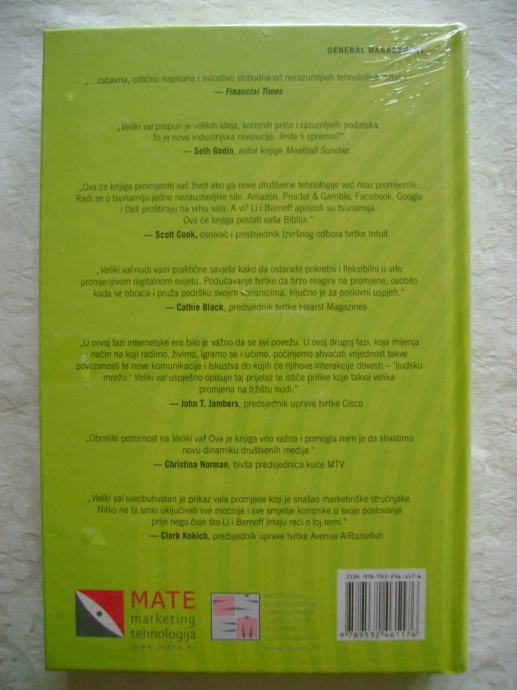 Charlene Li / Josh Bernoff - Veliki val; Kako pobijediti u svijetu novih društvenih tehnologija - izdavač Mate, Zagreb 2010. godine, 16 x 24 cm, tvrdi uvez, 230 stranica.