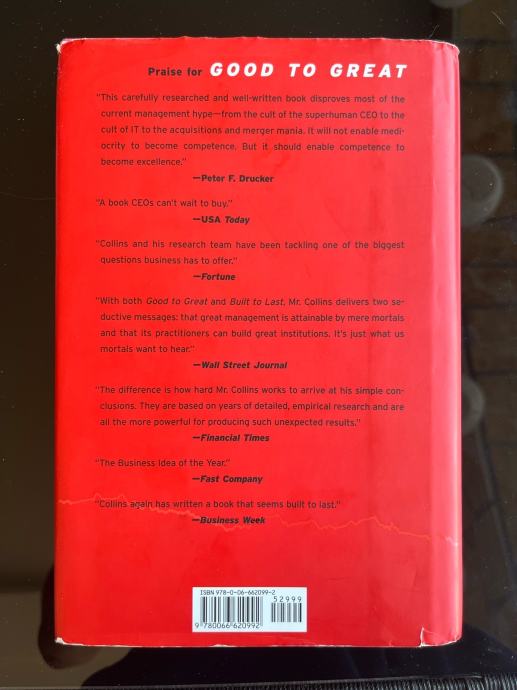 Prodajem rabljenu knjigu Good to Great. Na omotu korica vidljivi manji tragovi korištenja, no generalno u odličnom stanju. Moguće slanje poštom na trošak kupca.
