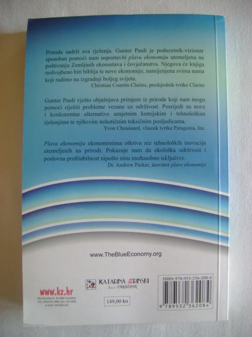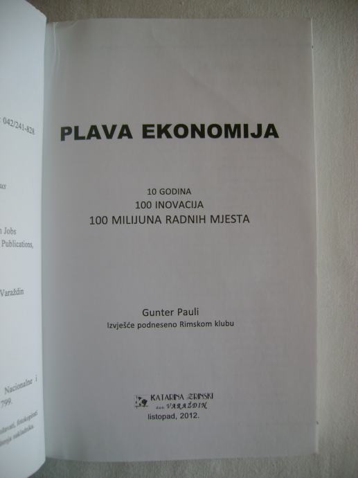 Gunter Pauli - Plava ekonomija - Izvješće podneseno Rimskom klubu - izdavač Katarina Zrinski, Varaždin 2012. godine, 14 x 20 cm, meki uvez, 375 stranica.
