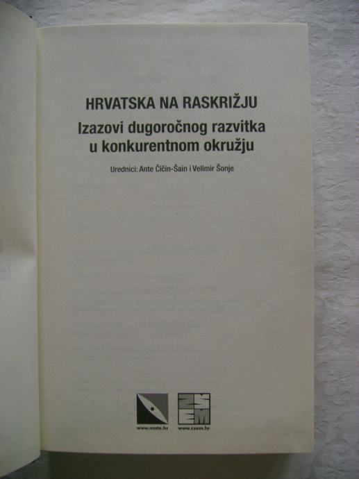 Hrvatska na raskrižju - uredili Ante Čičin-Šain i Velimir Šonje, izdavač Mate, Zagreb 2007. godine, 16 x 23 cm, tvrdi uvez, 480 stranica.