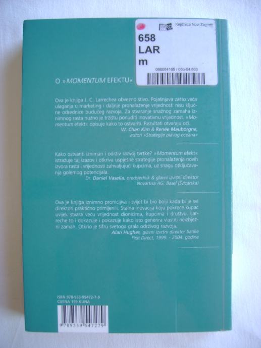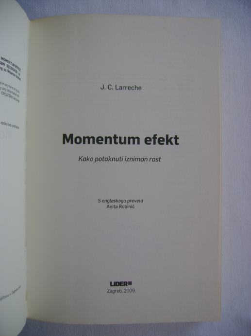 J.C. Larreche - Momentum efekt - Kako potaknuti izniman rast - izdavač Lider press, Zagreb 2009. godine, 15 x 23 cm, meki uvez sa preklopom, 302 stranice.