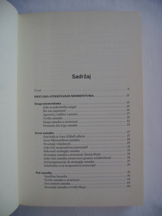 Ova je knjiga sustavni proces za stvaranje zamaha koji se uspješno primjenjuje u svakom poslu, svakoj industriji, u svim tržišnim uvjetima. Naučit ćete kako strategijom zamaha stvoriti novu vrijednost i izgraditi vještine vodstva kojim se ostvaruje izuzetno profitabilan rast u sljedećih šest mjeseci, pet godina pa čak i desetljeća."