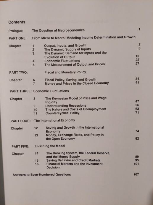 Mnogi udžbenici za dodiplomski studij tretiraju makroekonomiju kao skup različitih tema, a ne kao objedinjenu korpus teorije i empirijskih nalaza. Nasuprot tome, ovaj tekst Alana Auerbacha i Laurencea Kotlikoffa koristi jedan analitički okvir—model životnog ciklusa s dva razdoblja—kako bi istražio i povezao svako od glavnih pitanja u suvremenoj makroekonomiji. Model opisuje evoluciju gospodarstva tijekom vremena u smislu ponašanja preklapajućih generacija pojedinaca, od kojih svaka živi dva razdoblja: mladost i starost. Ovaj svestrani okvir može obuhvatiti većinu makroekonomskih škola mišljenja kroz izmjene ključnih pretpostavki. Korištenje jednog osnovnog modela također omogućuje autorima da istražuju važne teme koje nisu uvijek adekvatno obrađene u drugim tekstovima; to uključuje kreditna ograničenja, stvarne poslovne cikluse, generacijsko računovodstvo i međunarodna tržišta tokova kapitala.