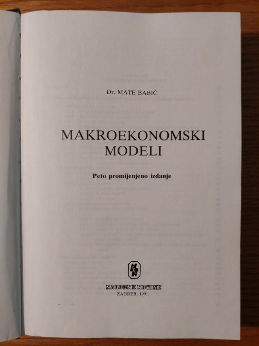 - Izdavač : "Narodne novine", Zagreb, 1991.