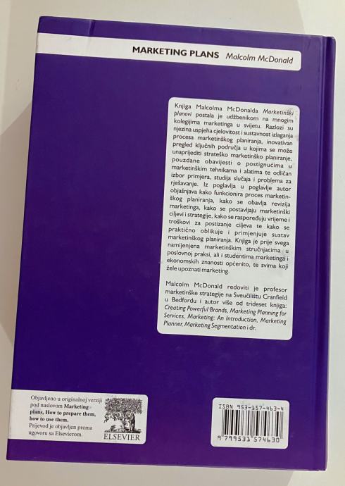 Knjiga Malcolma McDonalda Marketinški planovi postala je udžbenikom na mnogim kolegijima marketinga u svijetu. Razlozi su njezina uspjeha cjelovitost i sustavnost izlaganja procesa marketinškog planiranja, inovativan pregled ključnih područja u kojima se može unaprijediti strateško marketinško planiranje, pouzdane obavijesti o postignućima u marketinškim tehnikama i alatima te odličan izbor primjera, studija slučaja i problema za rješavanje. Iz poglavlja u poglavlje autor objašnjava kako funkcionira proces marketinškog planiranja, kako se obavlja revizija marketinga, kako se postavljaju marketinški ciljevi i strategije, kako se raspoređuju vrijeme i troškovi za postizanje ciljeva te kako se praktično oblikuje i primjenjuje sustav marketinškog planiranja. Knjiga je prije svega namijenjena marketinškim stručnjacima u poslovnoj praksi, ali i studentima marketinga i ekonomskih znanosti općenito, te svima koji žele upoznati marketing. Malcolm McDonald redoviti je profesor marketinške strategije na Sveučilištu Cranfield u Bedfordu i autor više od trideset knjiga: Creating Powerful Brands, Marketing Pianning for Services, Marketing: An Introduction, Marketing Planner, Marketing Segmentation i dr.