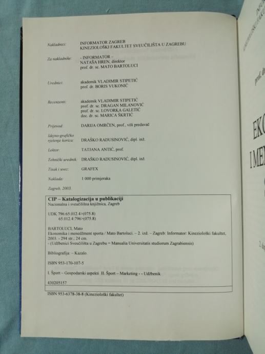 Nakladnik: Informator, Kineziološki fakultet Sveučilišta u Zagrebu