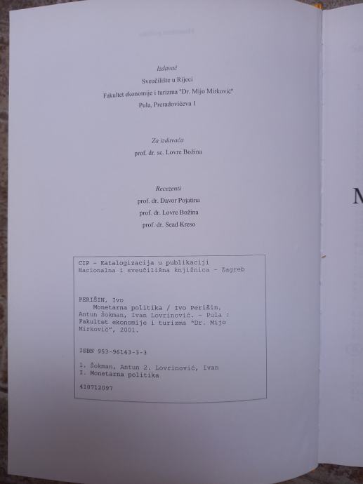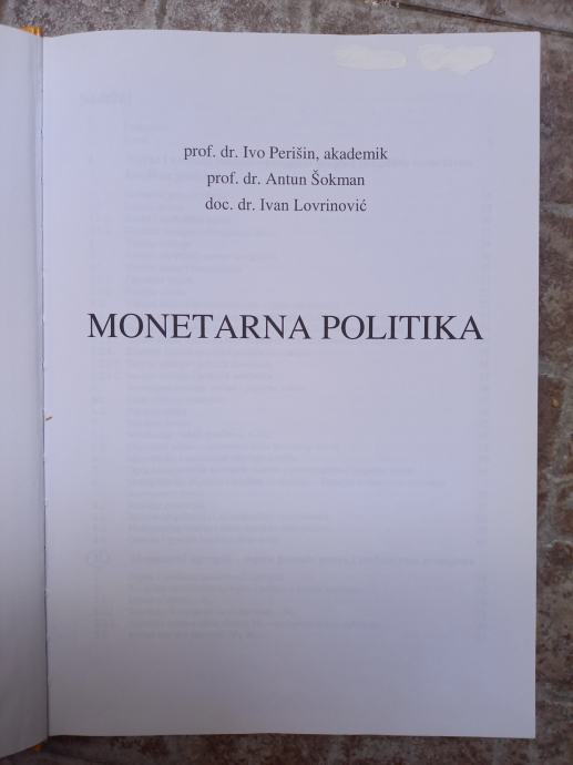MONETARNA POLITIKA - Ivo Perišin, Antun Šokman, Ivan Lovrinović
