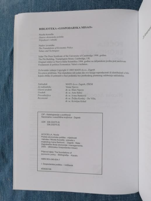 Nicola Acocella – Načela ekonomske politike : Vrijednosti i tehnike