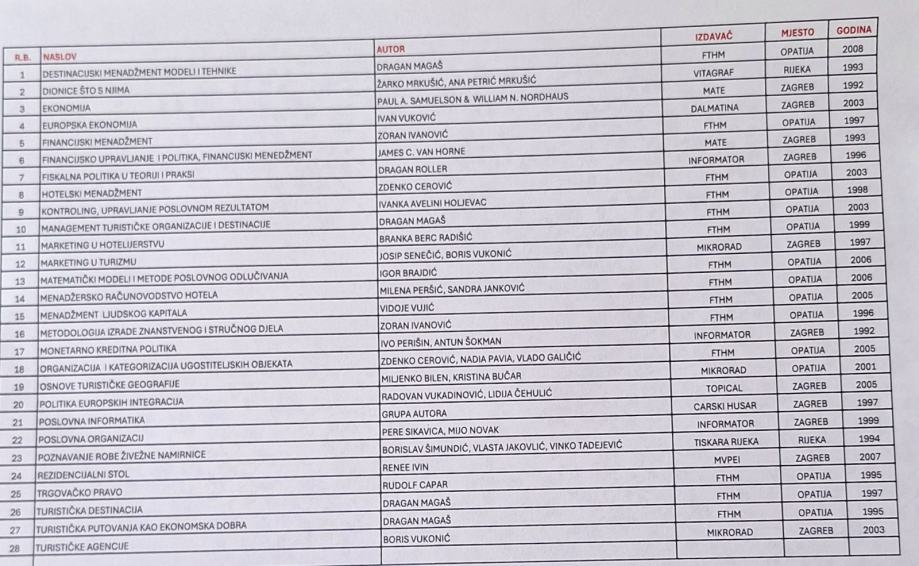 Izdavač većine knjiga je SVEUČILIŠTE U RIJECI, FAKULTET ZA HOTELSKI I TURISTIČKI MENADŽMENT U OPATIJI. Knjige su rabljene, ali u odličnom stanju, namijenjene studentima poslovne ekonomije u turizmu. CIJENA PO DOGOVORU. Knjige šaljemo poštom.
