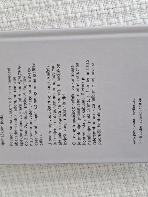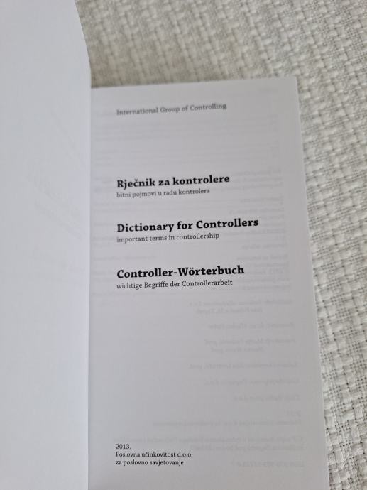 Rječnik za kontrolere, obuhvaća najbitnije stručne pojmove iz područja kontrolinga u praksi na hrvatskom, engleskom njemačkom jeziku. Izdavač Poslovna učinkovitost 367 str.