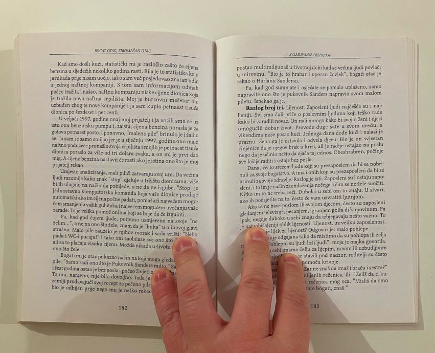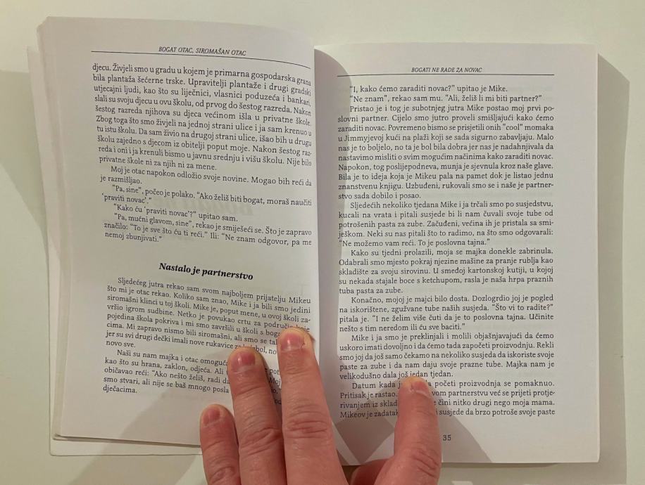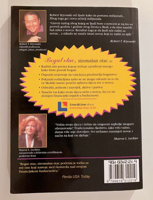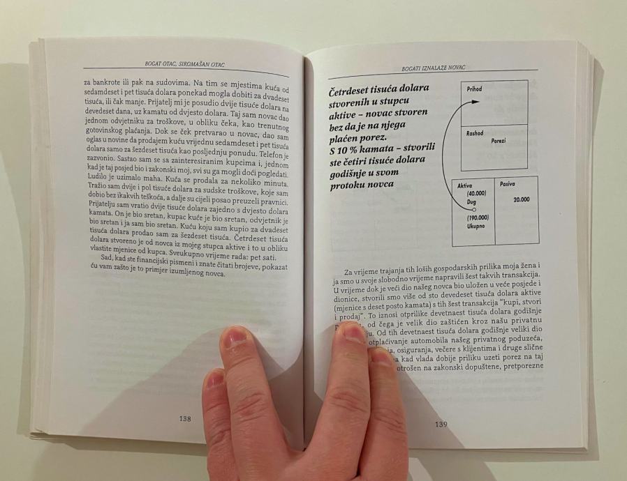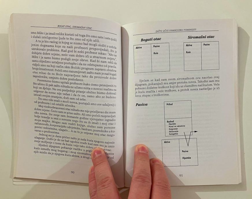 Bogati ne akumuliraju novac. Oni akumuliraju sredstva koja generiraju tok novca za njih. U čitanju Bogati otac Siromašni otac bolje ćete razumjeti snagu koju takvo razmišljanje može imati u vašem životu. Ako tražite financijsku slobodu, tada je ova knjiga odlično mjesto na kojem možete početi svoj proces učenja. Bogati otac, Siromašni otac Kyosakijeva je autobiografska priča o odrastanju s dva oca – biološkim ocem i ocem njegovog najboljeg prijatelja - i njihovim različitim utjecajima na mladog Roberta koji su oblikovali kako autor danas shvaća novac, ekonomiju i načine upravljanja novcem. Knjiga Bogati otac, siromašni otac će uništiti mit da vam je potrebna visoka zarada kako biste se obogatili. Promijeniti će uvjerenje da vam je kuća aktiva. Pokazati roditeljima zašto se ne mogu osloniti na to da će školski sustav podučavati njihovu djecu o novcu. Objasnit vam čemu trebate podučiti svoju djecu u vezi novca kako biste osigurali njihov financijski uspjeh u budućnosti. Bogati otac, siromašni otac početna je točka za svakoga tko želi steći kontrolu nad svojom financijskom budućnošću.