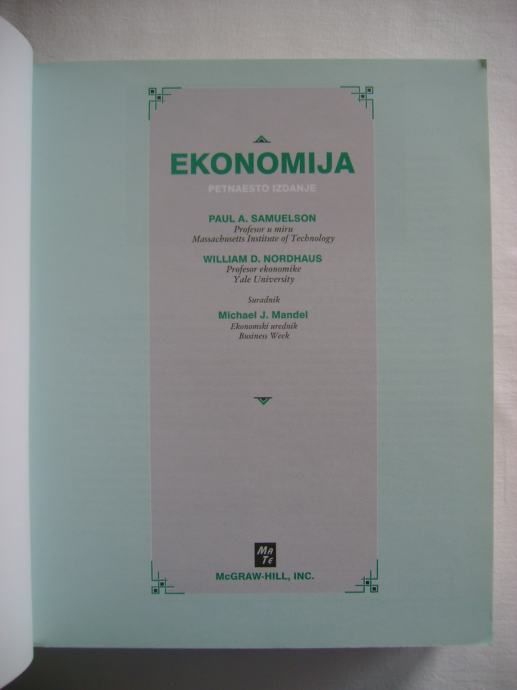 Paul A. Samuelson / William D. Nordhaus - Ekonomija - petnaesto izdanje, izdavač Mate, Zagreb 2000. godine, 21 x 26 cm, meki uvez, 794 stranice.