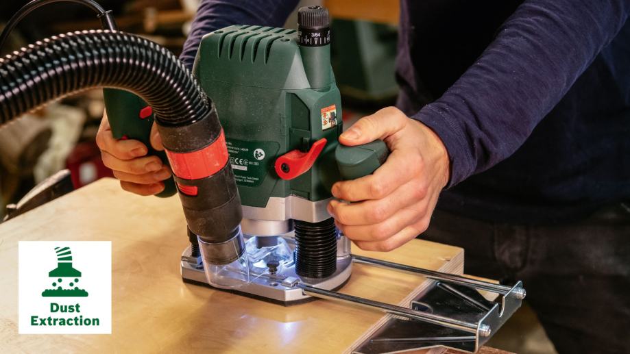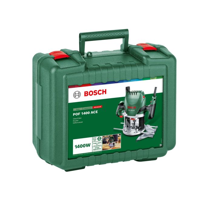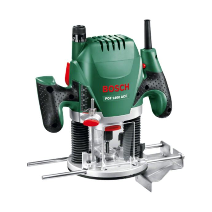 Snažni motor od 1.400 W za zahtjevne zadatke u svim vrstama drva. Bosch SDS-sustav omogućuje jednostavno umetanje čahure za kopiranje bez upotrebe alata. Ugrađena radna svjetiljka – radni je predmet uvijek dobro osvijetljen. Izbor broja okretaja u skladu s materijalom zahvaljujući Bosch elektronici s kotačićem za podešavanje i sklopkom za dodavanje gasa. Priključak za usisavač – za rad bez prašine. Izvanredni ergonomski dizajn s mekanim rukohvatom za udoban i siguran rad. Izbor broja okretaja