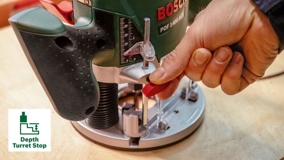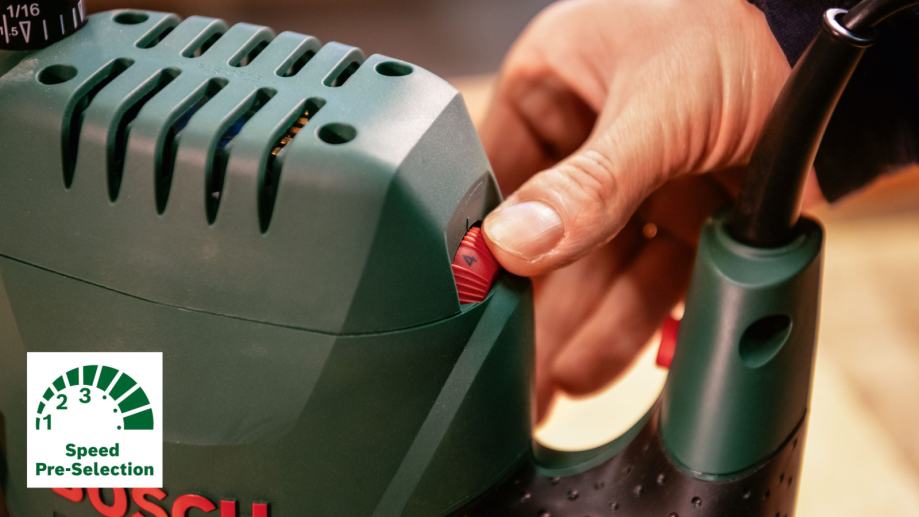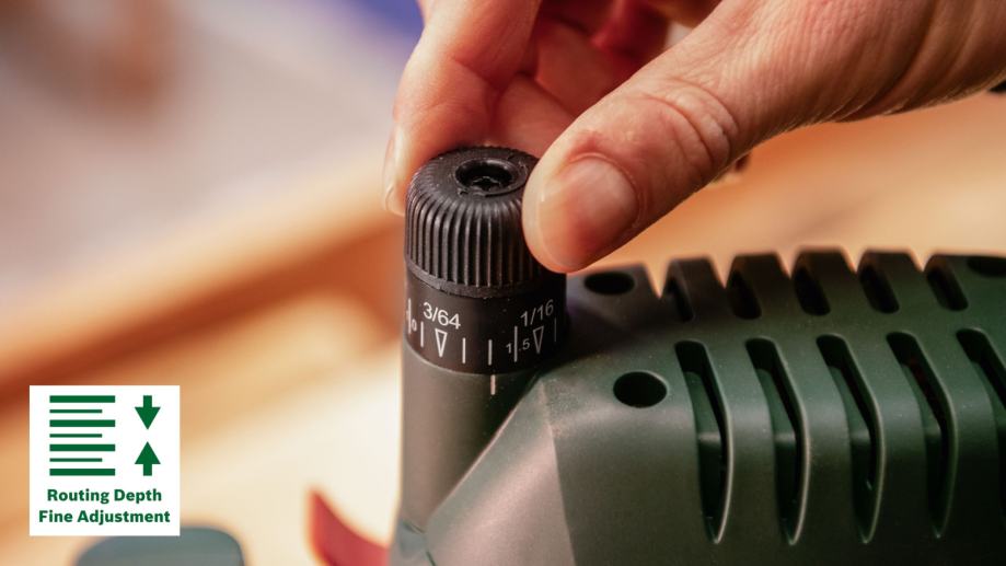 Bosch sustav Constant-Electronic stalno održava konstantni broj okretaja i osigurava optimalnu kvalitetu rezanja. Fino podešavanje dubine glodanja – idealno za zahtjevne radove uz točnost od 1/10 mm. Jednostavna i brza promjena glodala zahvaljujući integriranoj blokadi vretena.