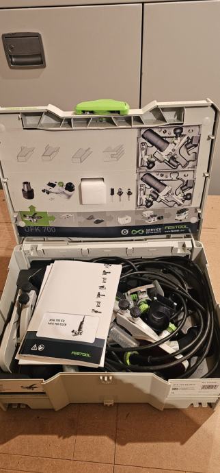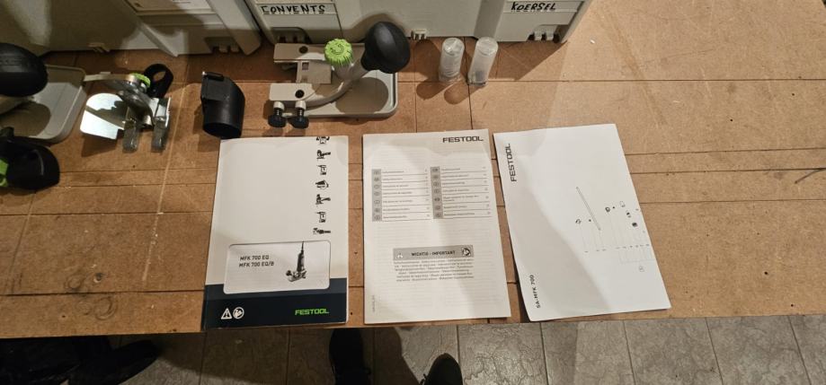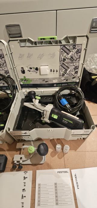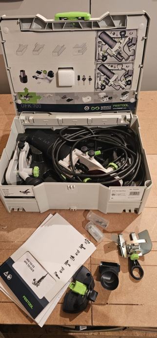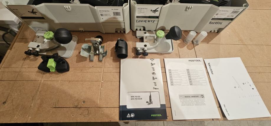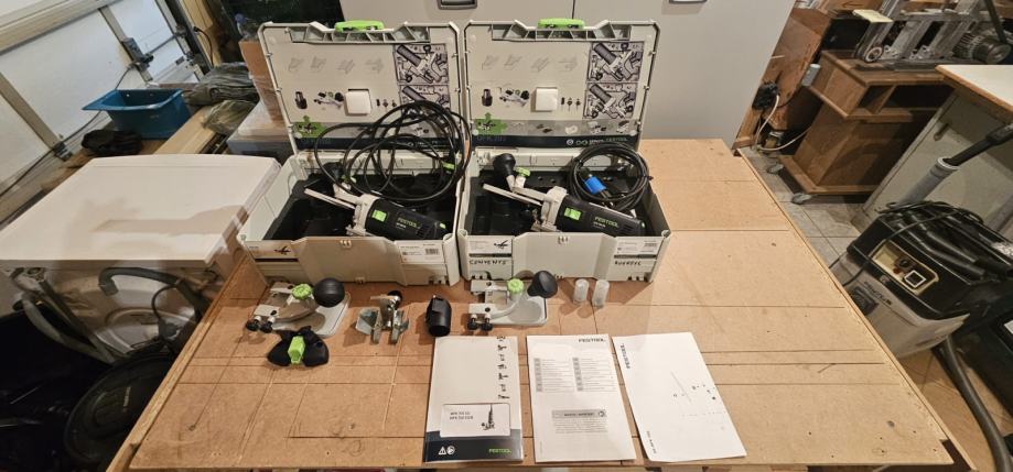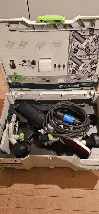 Festool OFK 700 EQ frezer / glodalice 2 komada, ispravno, svaka ima svoju kutiju, svaka ima svoj kabel, dodatno nastavci i korisnički priričnik, rezervni lager za odstojnik, svaka ima svoje glodalo, nastavak za usisicvač. Prodaju se u kompletu obadvije skupa.