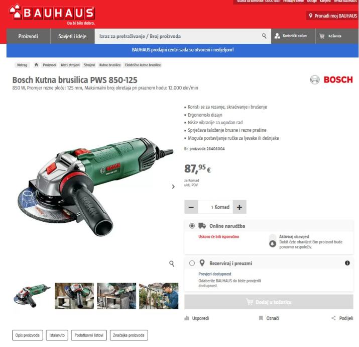 Bosch kutna brusilica Universal Grind 850-125, NOVO, R1 RAČUN, 36 RATA