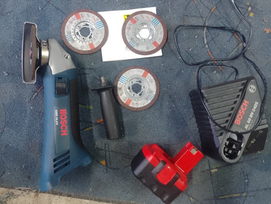 GWS 14,4 V. 4 brusne šajbe,punjač i jedna baterija. Davno kupljeno i nikada rabljeno.